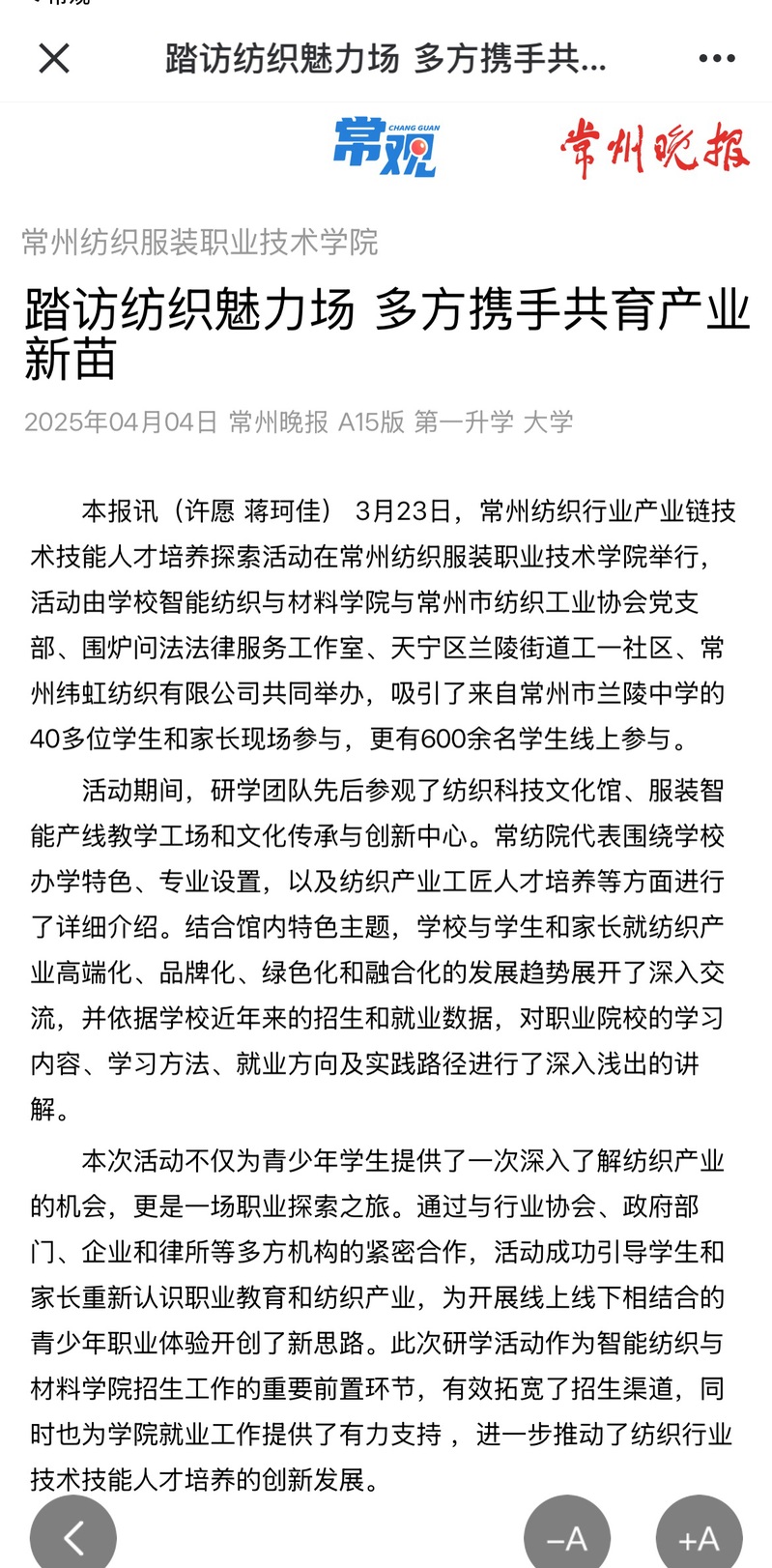 • 常州晚報(bào)|常州紡織服裝職業(yè)技術(shù)學(xué)院:踏訪紡織魅力場(chǎng) ...