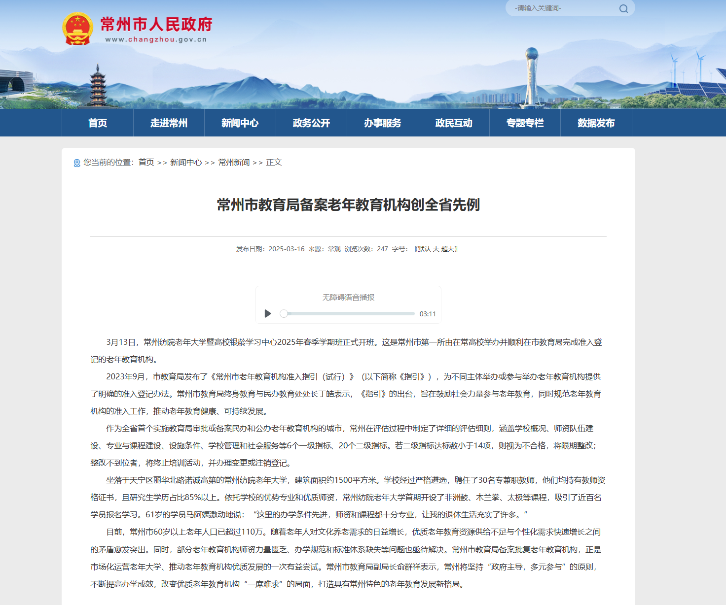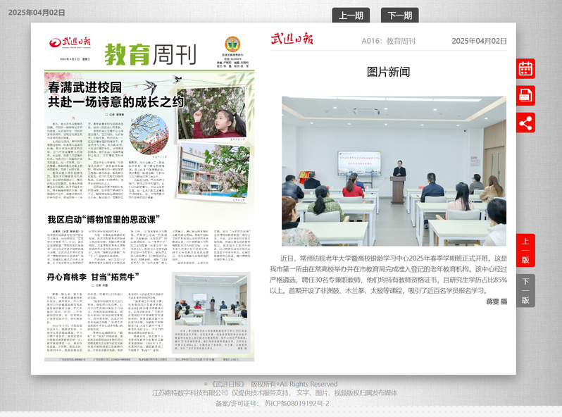 • 武進(jìn)日?qǐng)?bào)|常州紡院老年大學(xué)暨高校銀齡學(xué)習(xí)中心2025年...